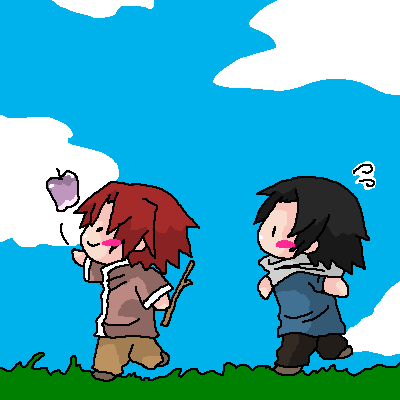 いつもジェネシスが先頭で、アンジールが後ろからついていく。バカリンゴもいつも一緒。