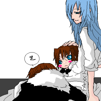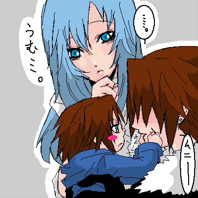 ウォーリアが興味深そうに眺めてますが、本当は仲良くさせようと近づけている。スコールも何とかぎこちなくでも仲良くしようと努力するものの、ほっぺつねられてる。